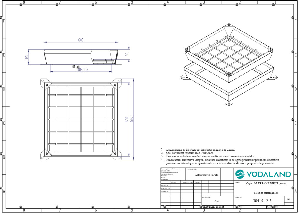 fedlap OZ URBAN UNIFILL rejtett négyzetes 600x600 PL.500x500 Hext.120 Hin.80 zárral B125 (30415.12-3)