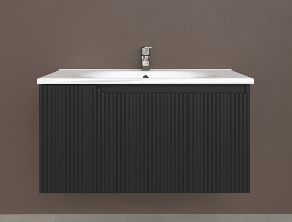 Piramida EURIDIKA fali fürdőszobabútor - műmárvány mosdóval -3 ajtós - PINO FEKETE- 100 x 48 x 53 cm