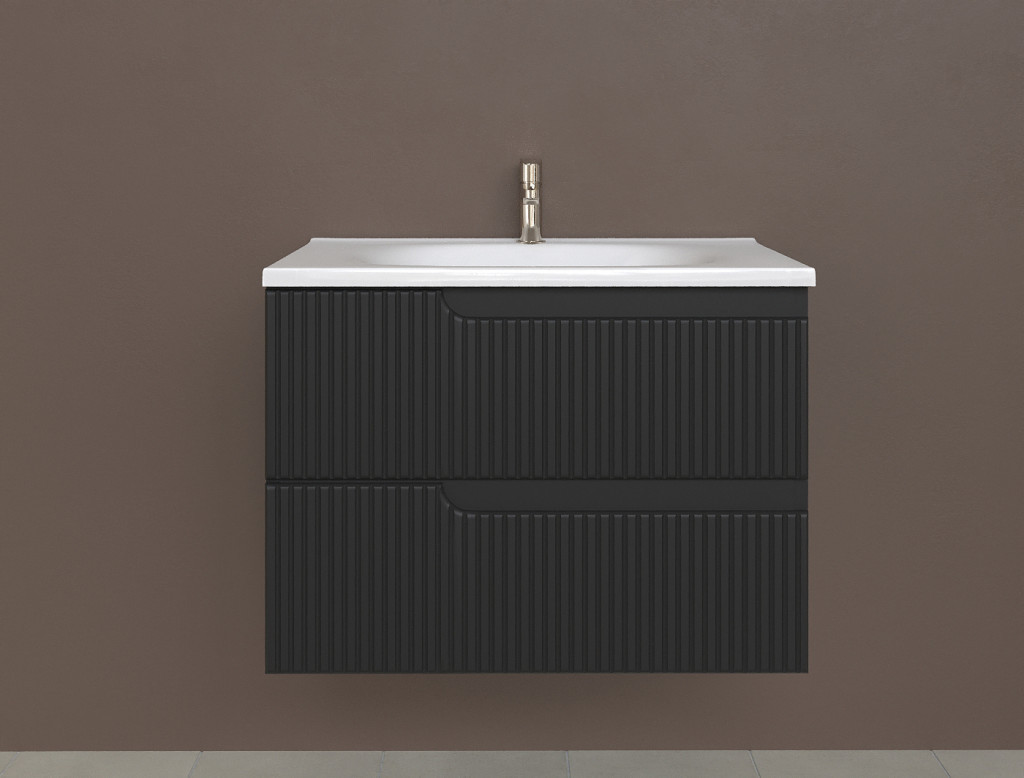 Piramida EURIDIKA fali fürdőszobabútor - műmárvány mosdóval -2 fiókos - PINO FEKETE - 75 x 48 x 53 cm