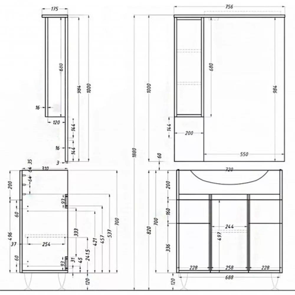 A fürdőszobabútor kevés helyet foglal viszont tágas alsó és felső szekrénnyel rendelkezik ahol kényelmesen elférnek a fürdőszobai pipere eszközök. Kevés helyigénye miatt kisebb fürdőszobák berendezésére is alkalmas, például panel lakásokban. A termék magas minőségű bútorlapból készül és színben passzoló élzárókkal van ellátva. A fürdőszoba bútor mosdóval együtt kapható.