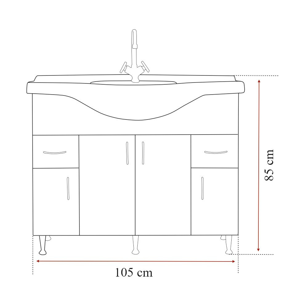 - Alsó rész mosdó nélkül : 80x102x33 cm (mosdóval : 82x105x48 cm )