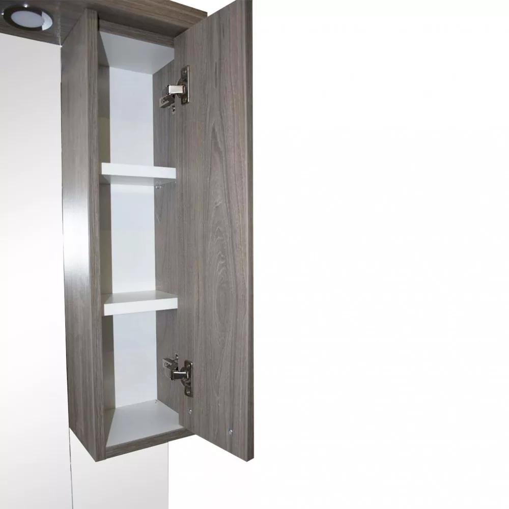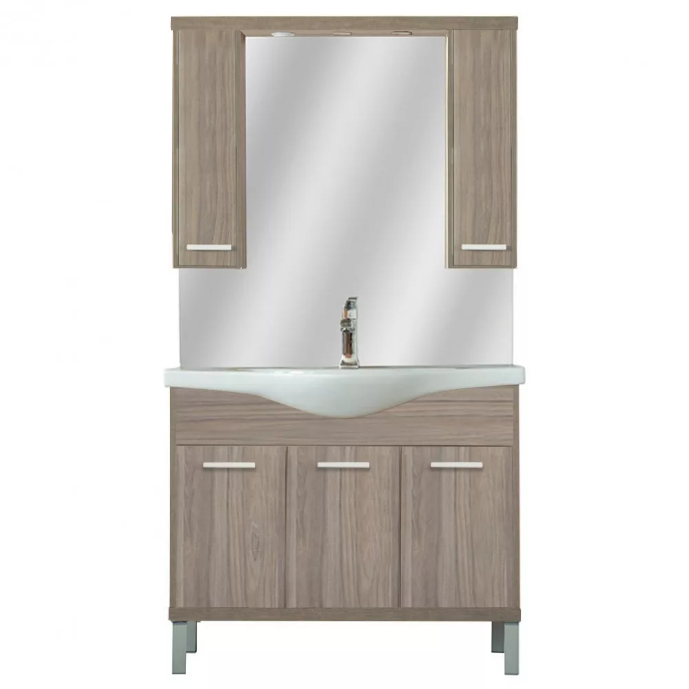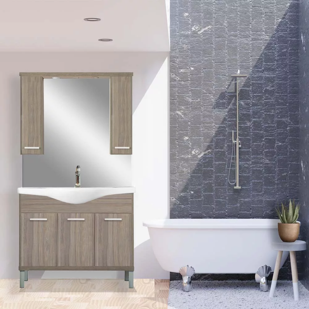 A fürdőszobabútor kevés helyet foglal viszont tágas alsó és felső szekrénnyel rendelkezik, ahol kényelmesen elférnek a fürdőszobai pipere eszközök. Kevés helyigénye miatt kisebb fürdőszobák berendezésére is alkalmas, például panel lakásokban. A termék magas minőségű bútorlapból készül és színben passzoló élzárókkal van ellátva. A fürdőszobabútor mosdóval együtt kapható.
