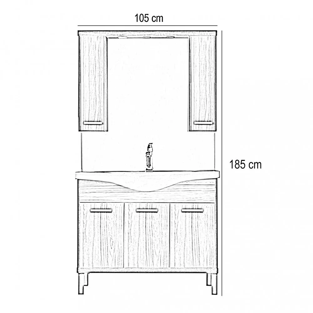 A fürdőszobabútor kevés helyet foglal viszont tágas alsó és felső szekrénnyel rendelkezik, ahol kényelmesen elférnek a fürdőszobai pipere eszközök. Kevés helyigénye miatt kisebb fürdőszobák berendezésére is alkalmas, például panel lakásokban. A termék magas minőségű bútorlapból készül és színben passzoló élzárókkal van ellátva. A fürdőszobabútor mosdóval együtt kapható.