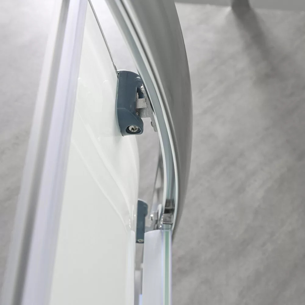 A Leziter Spirit Bamboo zuhanykabin íves formája végett illeszkedik a sarokba, így helytakarékos elrendezést kínál, miközben tágas és kényelmes zuhanyzási teret biztosít. A krómozott alumínium profilok és a 16 cm-es fém fogantyúk stabil, masszív szerkezetet adnak, amely hosszú távon is megőrzi formáját és fényét. A mintás biztonsági üveg természetes hatású, világos felületet alkot, amely megőrzi a tér nyitottságát, ugyanakkor kellemesen diszkrét megjelenést kölcsönöz a zuhanyzónak.