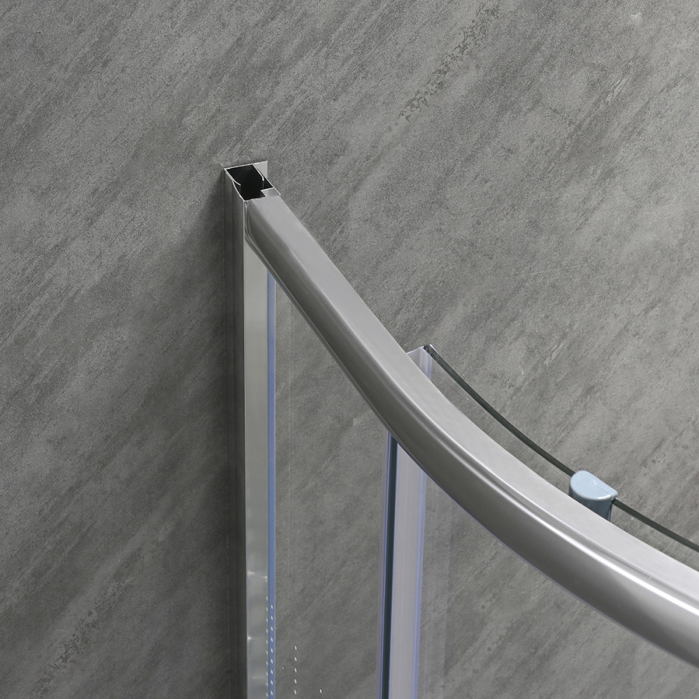 | Cink fogantyú  Kiváló minőség, hosszú élettartam. | Állítható fali profil  Ha nem teljesen függőleges a fal akkor az eltérést korrigálhatja | Vízvető  Az ajtó és a fix fal között megakadályozza a víz szivárgását, megakadályozva fürdőszobája elázását |