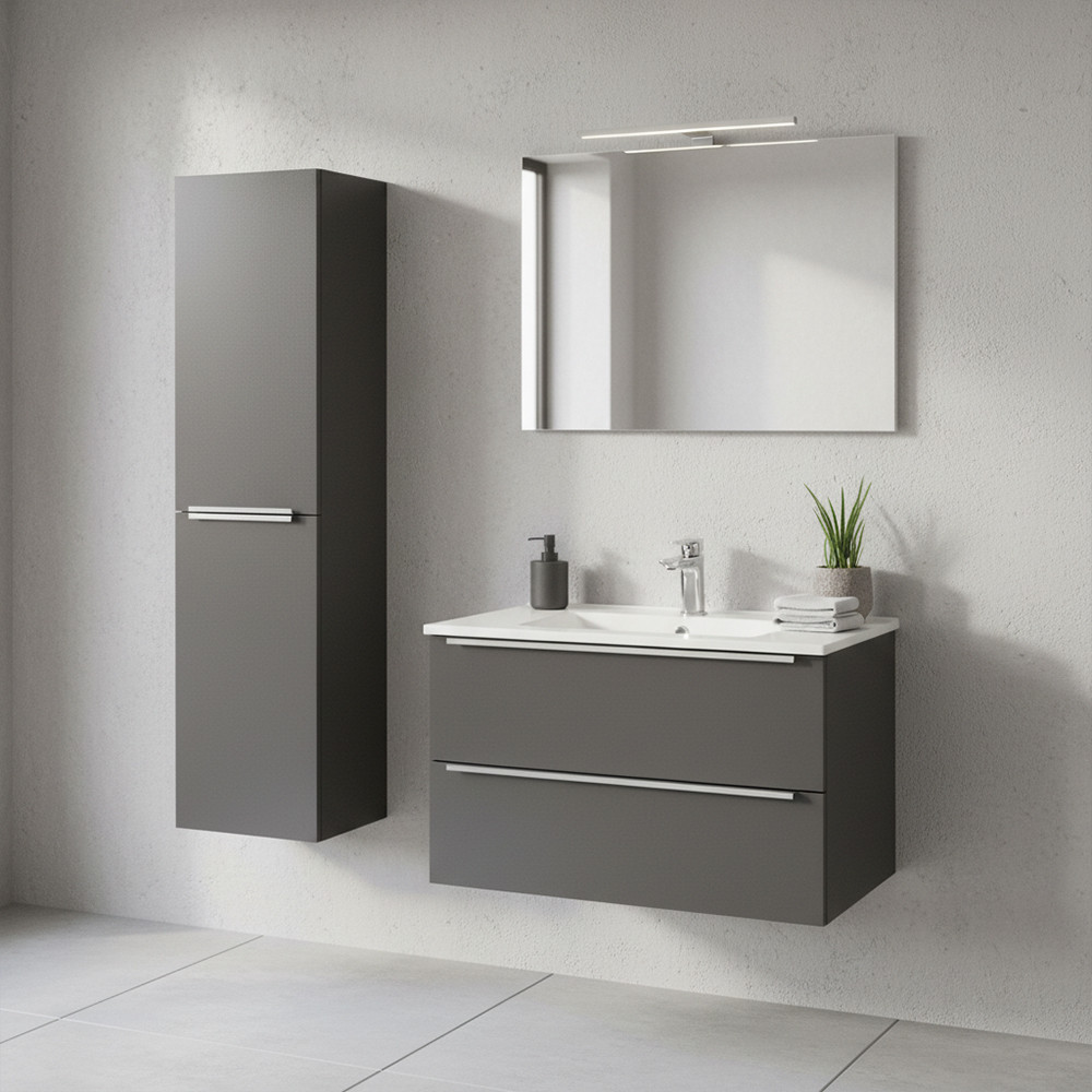 A Vario Trim 35 függesztett oldal szekrény ideális kiegészítője minden modern fürdőszobának. Remek választás, ha extra tárolóhelyre van szükség kompakt méretben a dizájnt és a minőséget is szem előtt tartva. Az antracit korpusz és antracit front időtlen, letisztult megjelenést biztosít, amely harmonikusan illeszkedik a Vario Trim család további elemeihez.
