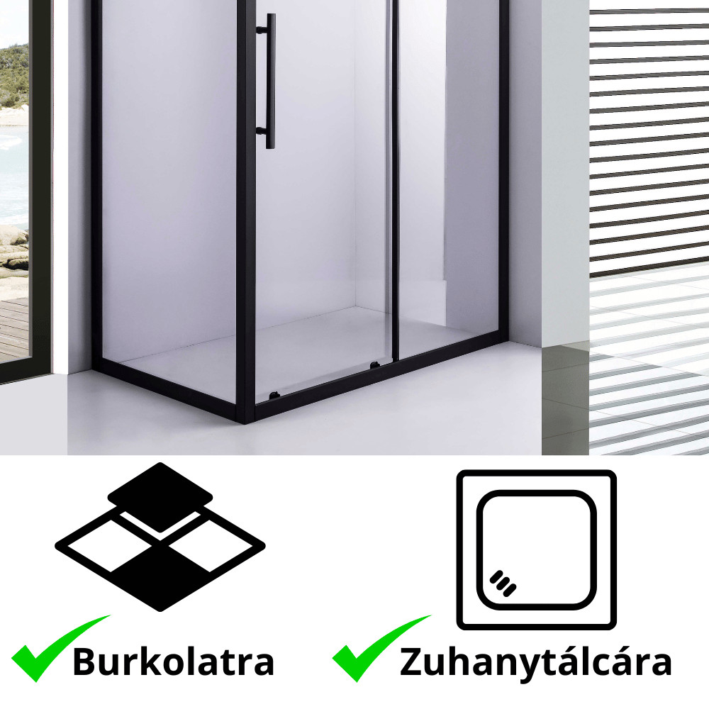 - fekete színű magasított rozsdamentes acél fogantyúk: Elegáns megjelenést kölcsönöznek a zuhanykabinnak.