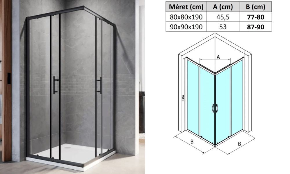 Stuxi Delhi Black X 80x80 cm szögletes két tolóajtós zuhanykabin matt fekete színben