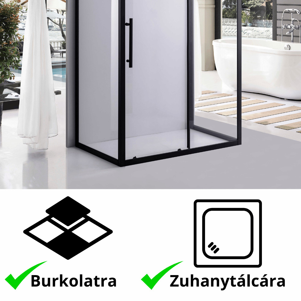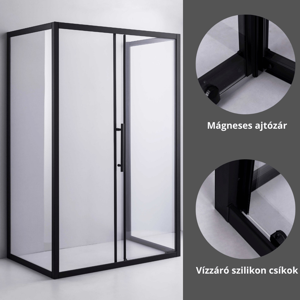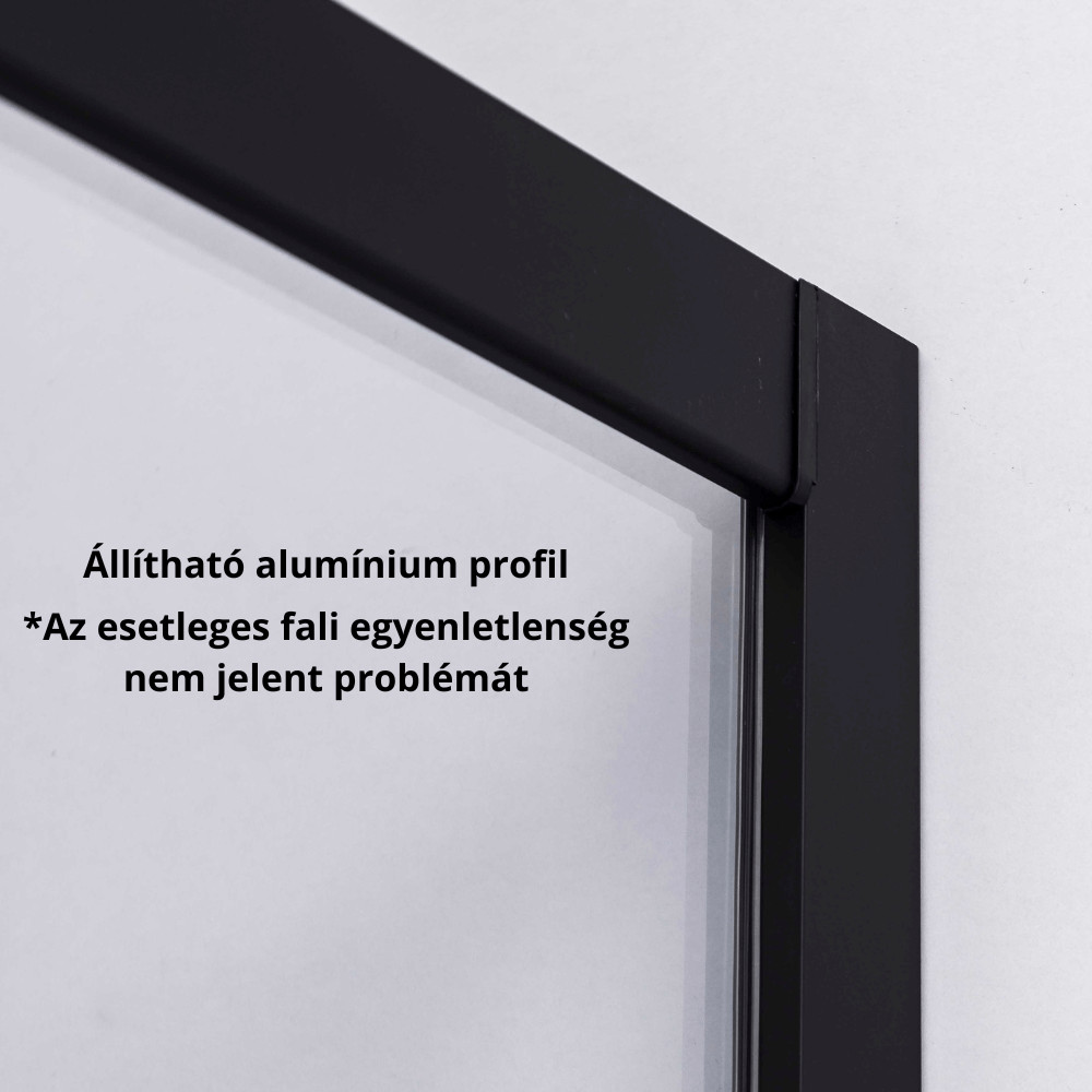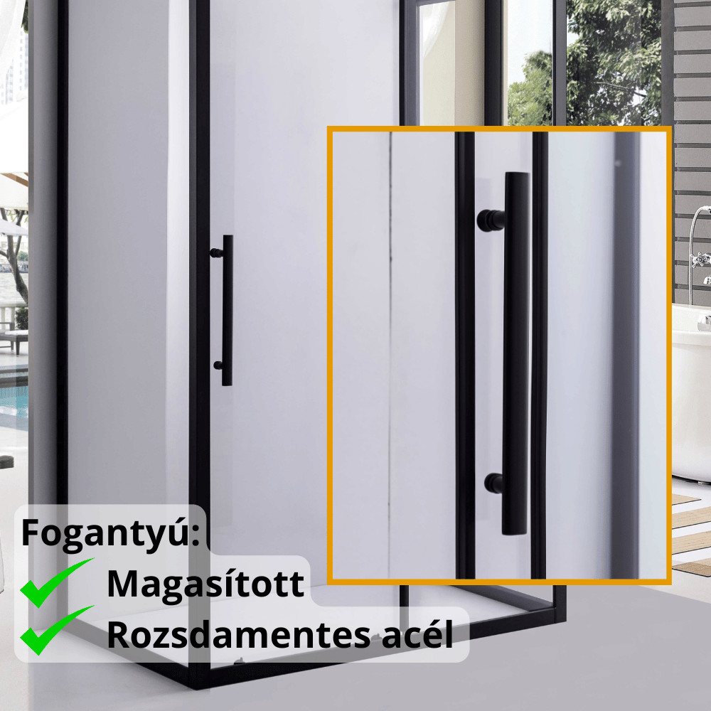 - fekete színű magasított rozsdamentes acél fogantyúk: Elegáns megjelenést kölcsönöznek a zuhanykabinnak.