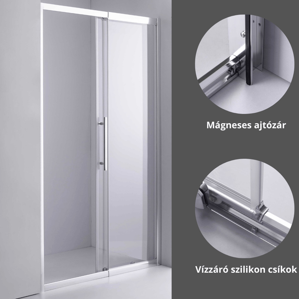- Vízálló szilikon csíkok: Megakadályozzák a víz kifolyását a zuhanyajtóból.