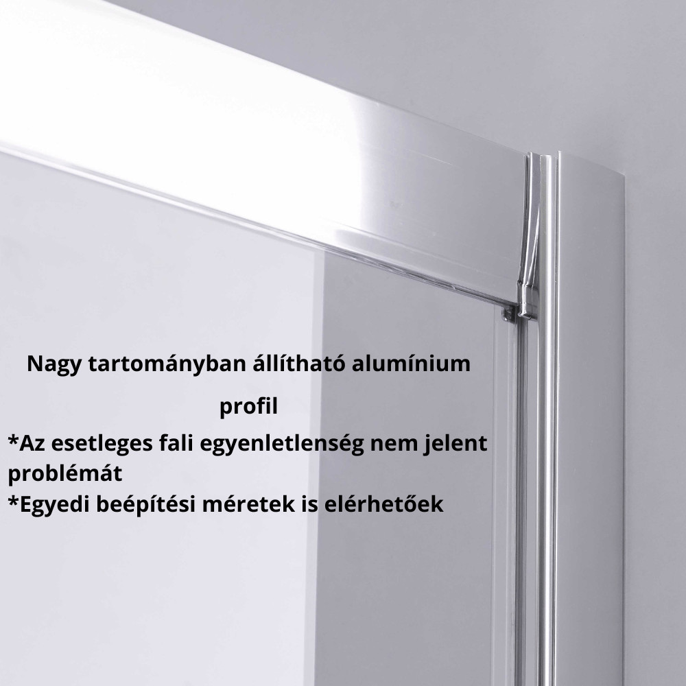 - Króm színú nagy tartományban állítható alumínium profilok: Az esetleges fali egyenlőtlenségek és az egyedi méretek sem jelentenek akadályt.