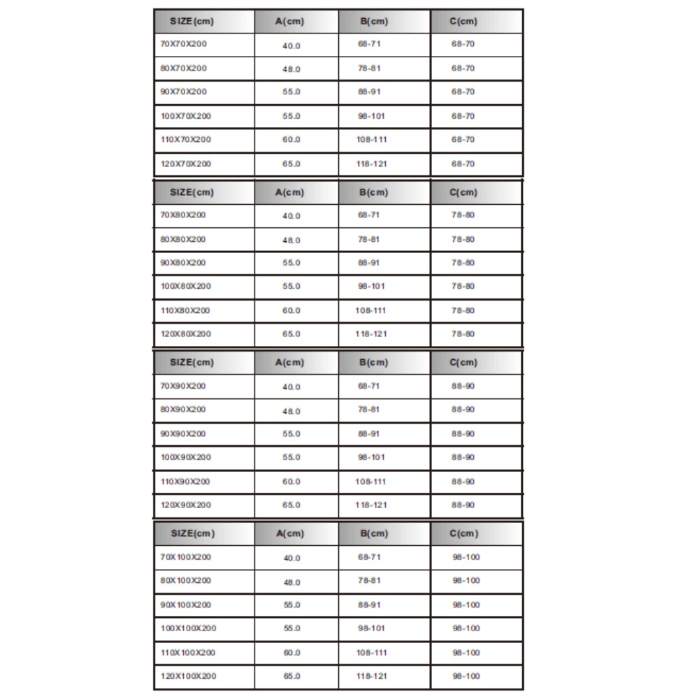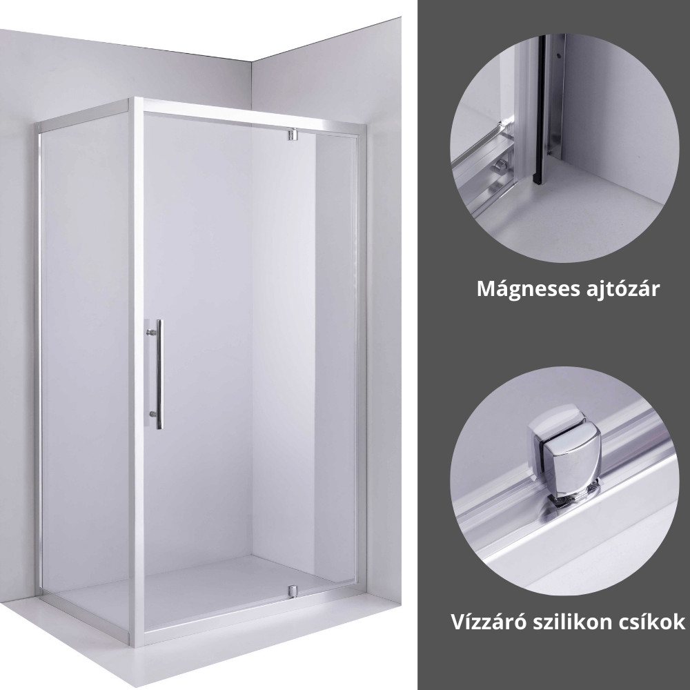 - Vízálló szilikon csíkok: Megakadályozzák a víz kifolyását a zuhanykabintérből.