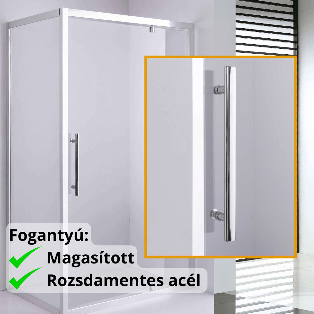 - Króm színű magasított rozsdamentes acél fogantyúk: Elegáns megjelenést kölcsönöznek a zuhanykabinnak.