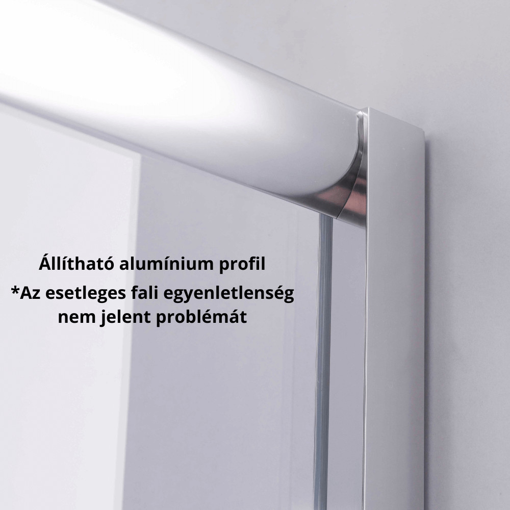 - Króm színú állítható alumínium profilok: Az esetleges fali egyenlőtlenségek nem jelentenek problémát.
