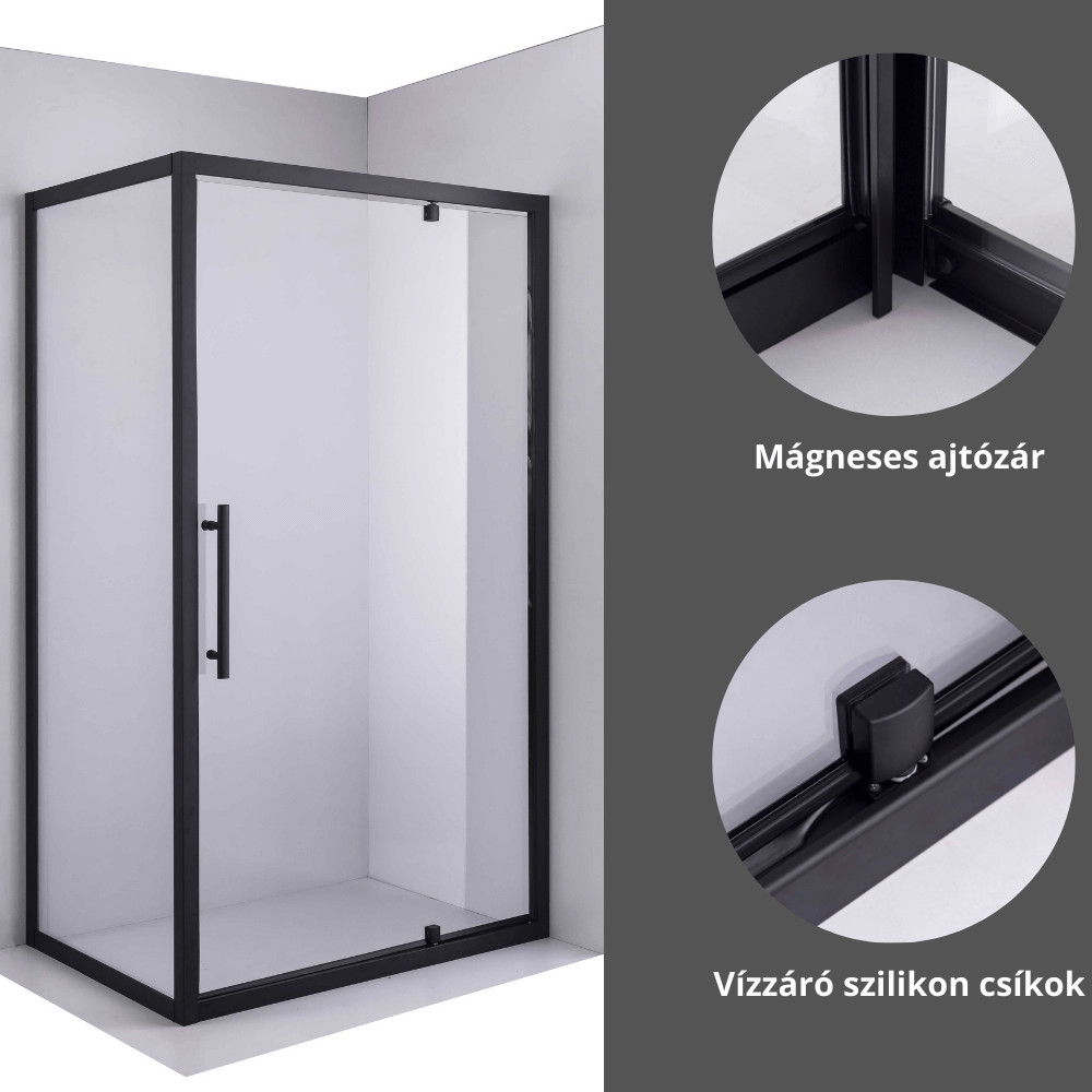 - matt fekete színű magasított rozsdamentes acél fogantyúk: Elegáns megjelenést kölcsönöznek a zuhanykabinnak.