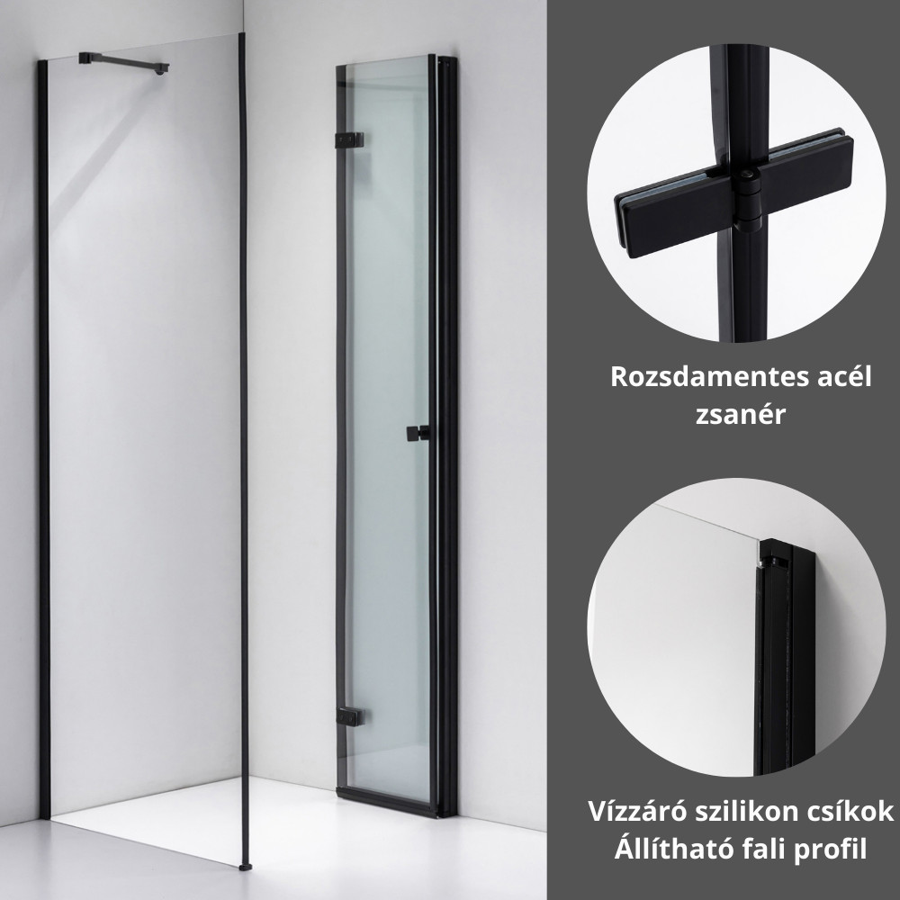 Ez a típus különösen népszerű panellakások és kisebb alapterületű fürdőszobák felújításakor, hiszen az ajtó nem nyílik ki a térbe, így nem ütközik bele a mosdóba vagy a mosógépbe. A 195 cm-es magasság megakadályozza a víz kifröccsenését a kabin felett, így biztosítva a teljes komfortot.