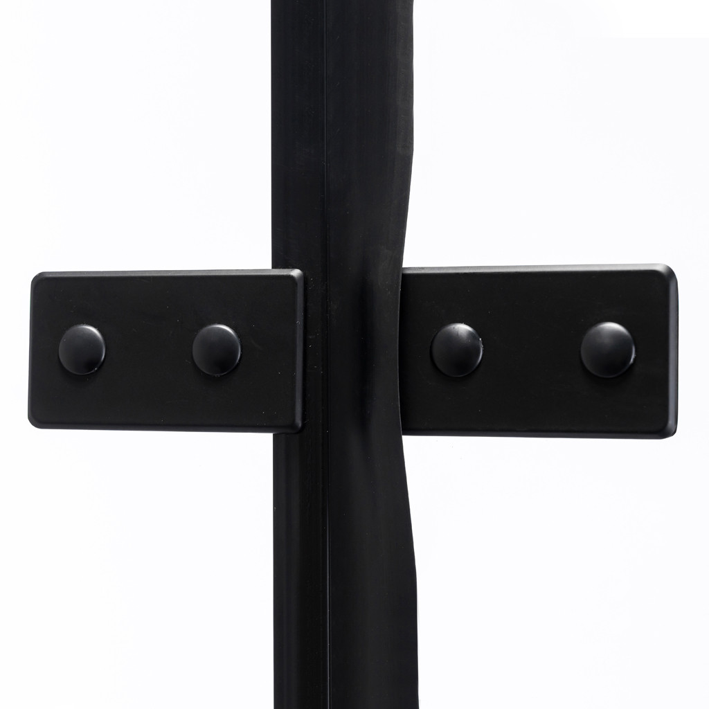 - Stabilitás: 45 fokos ferde merevítő rúd (oblique supporting bar) rögzíti a fix falat. A fix fal alján fém stabilizáló található.