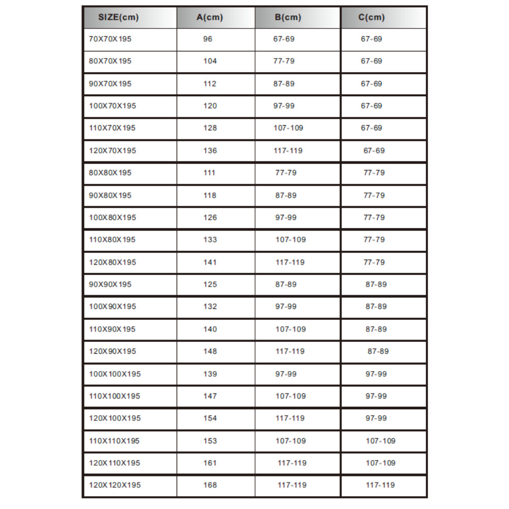 Az ajtók befelé csukódnak (folding door technológia). Ez megakadályozza, hogy a zuhanyzás után az üvegről lecsorgó víz a fürdőszoba padlójára kerüljön az ajtó nyitásakor.