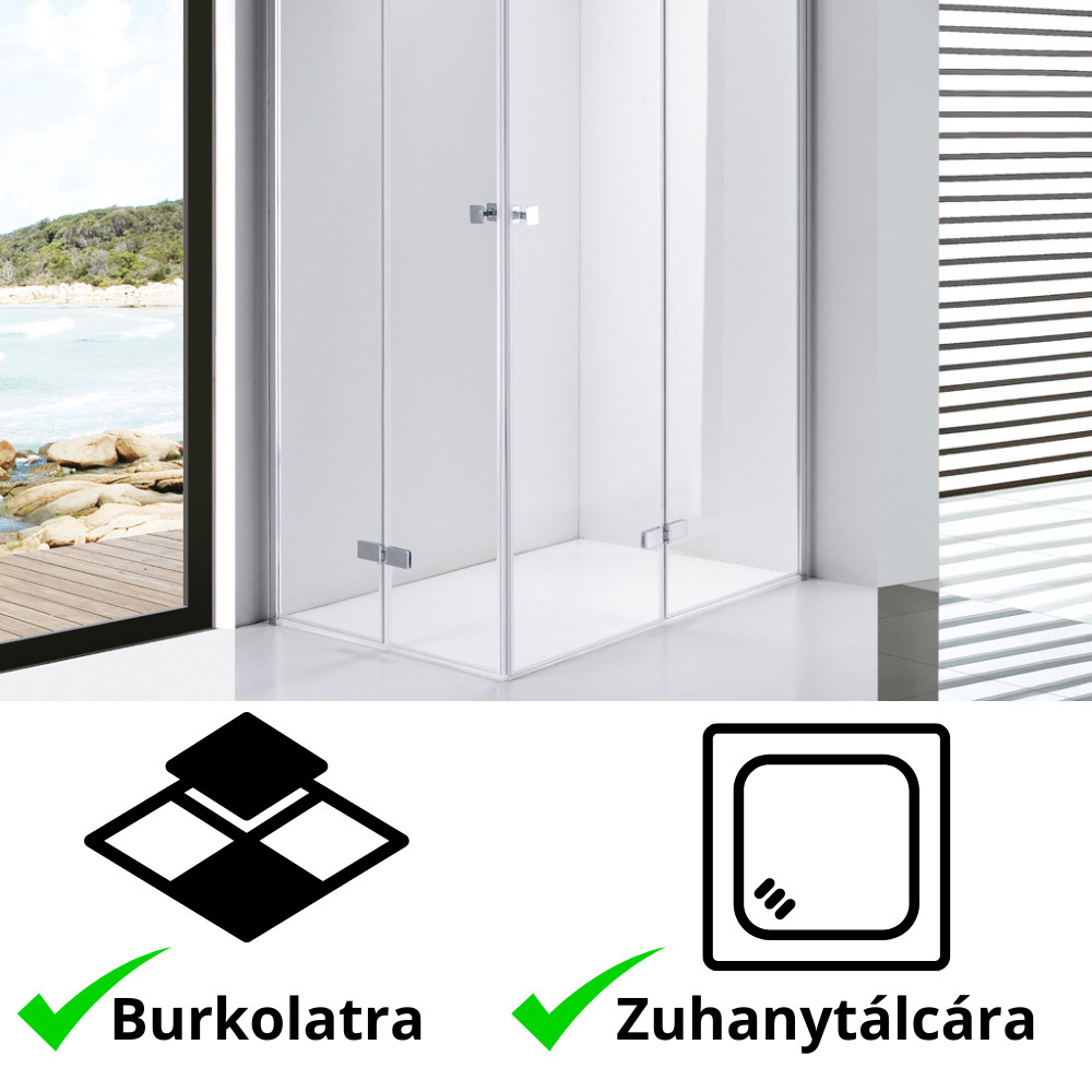 A Stuxi Verona Duo az aszimmetrikus kialakítás és a dupla csuklóajtós technológia csúcsmodellje. Ez a változat két darab befelé csukódó harmonikaajtóból áll, amelyek lehetővé teszik, hogy a 80x70 cm-es kabin használaton kívül teljesen a falra simuljon. Nincsenek fix üvegfalak, nincsenek zavaró távtartó rudak – csak a tiszta tér és a maximális funkcionalitás.